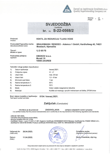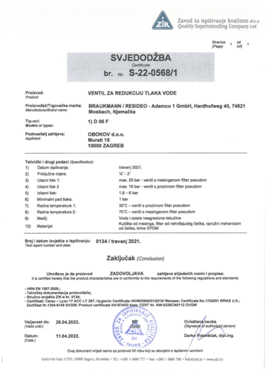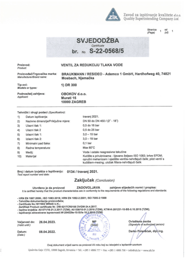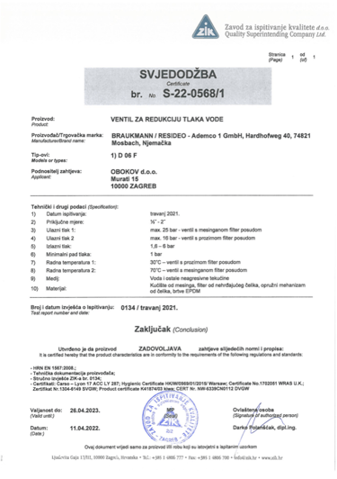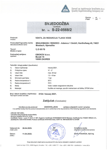 Braukmann D06F ventili za smanjenje tlaka štite kućne instalacije pitke vode od visokog tlaka i prenapona tlaka u dovodnim cjevovodima prema EN 806-2. U okviru svojih specifikacija, D06F je prikladan za kućne, industrijske i komercijalne instalacije.