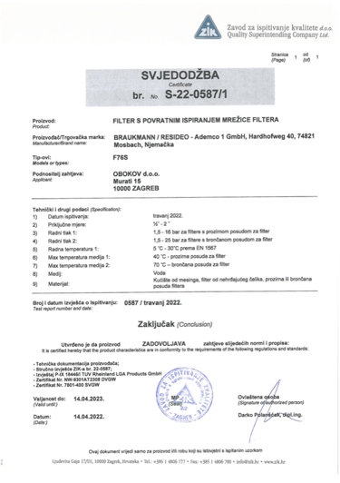 F76S - filter s povratnim ispiranjem mrežice filtera