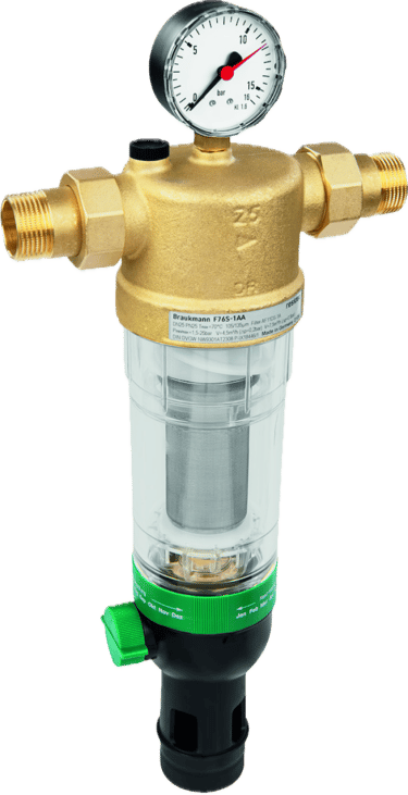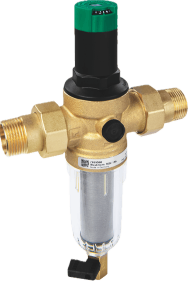 Resideo Braukmann filtar za obrnuto ispiranje tvrtke Resideo je filtar za vodu visokog protoka koji pomaže u uklanjanju otpadaka i sedimenta iz stambenih ili poslovnih sustava. Zbog svog kapaciteta filtriranja protoka i lakoće čišćenja, idealan je čak i za najzahtjevnije primjene. Sadrži ugrađeni sekundarni filter za stalnu opskrbu filtriranom vodom tijekom ispiranja.